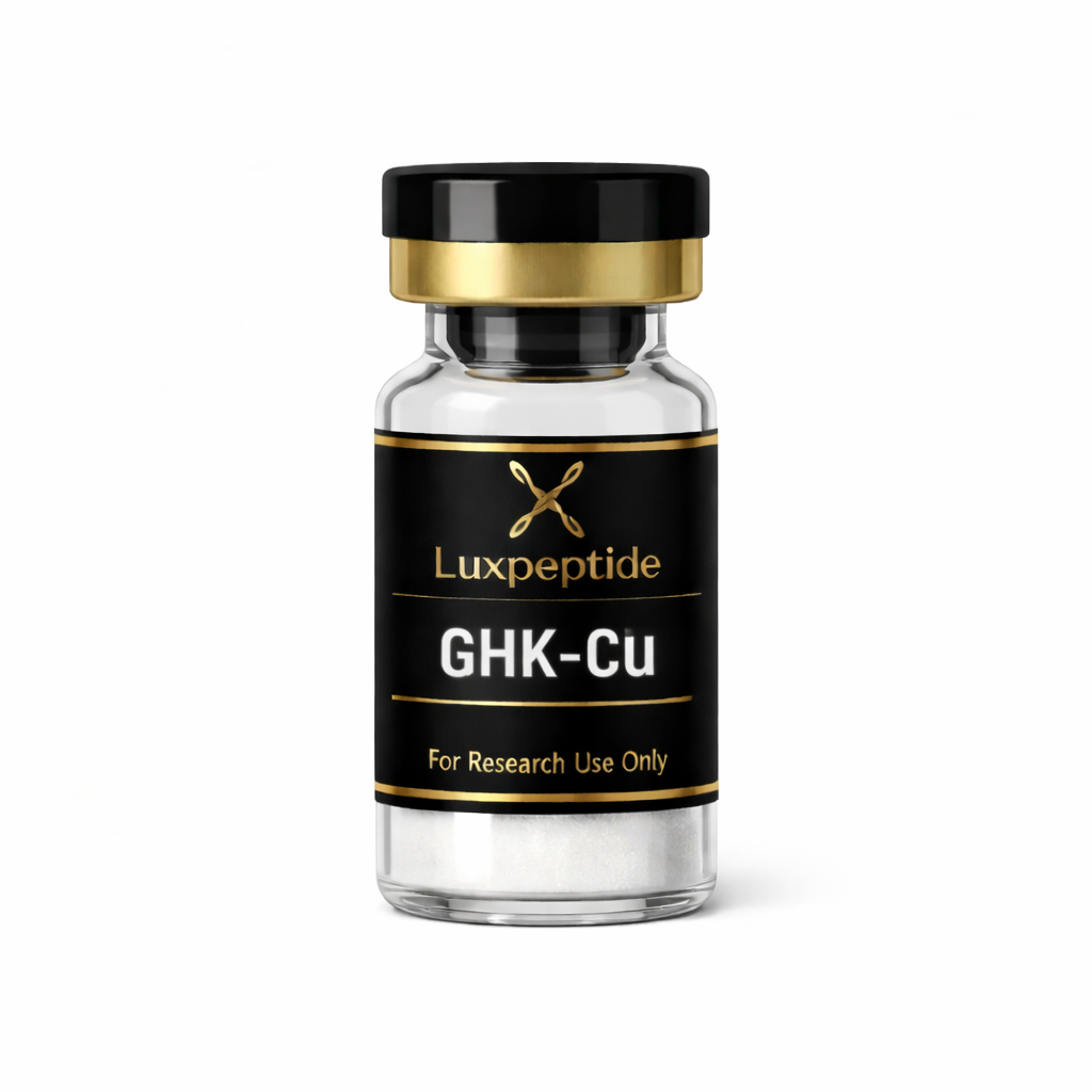 GHK-Cu is a synthetic copper-binding peptide complex composed of glycyl-L-histidyl-L-lysine (GHK) combined with a copper ion. It is commonly utilized in laboratory and preclinical research focused on cellular signaling, extracellular matrix interactions, and peptide–metal binding mechanisms. Its well-characterized structure makes it a frequent selection for controlled experimental studies.